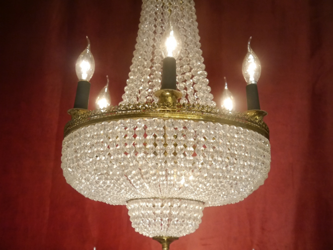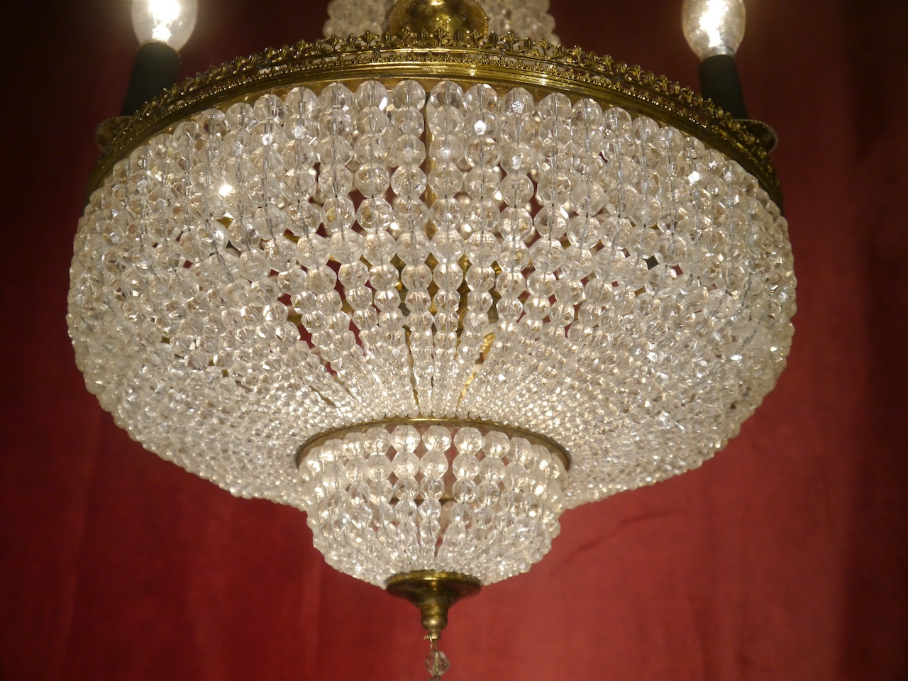 mittelgroßer seltener Korblüster Messing Perlenkaskaden 9 Lampen