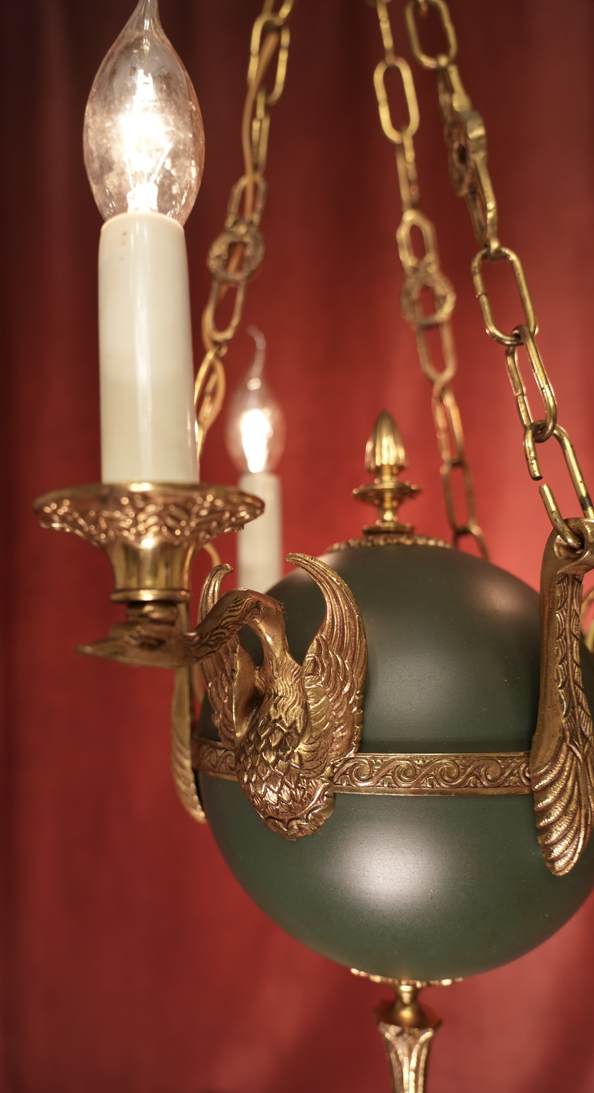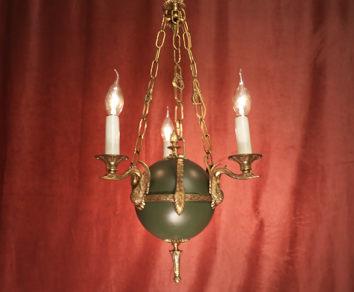 3 flammiger schöner Empire Kronleuchter Grünlack figürlich