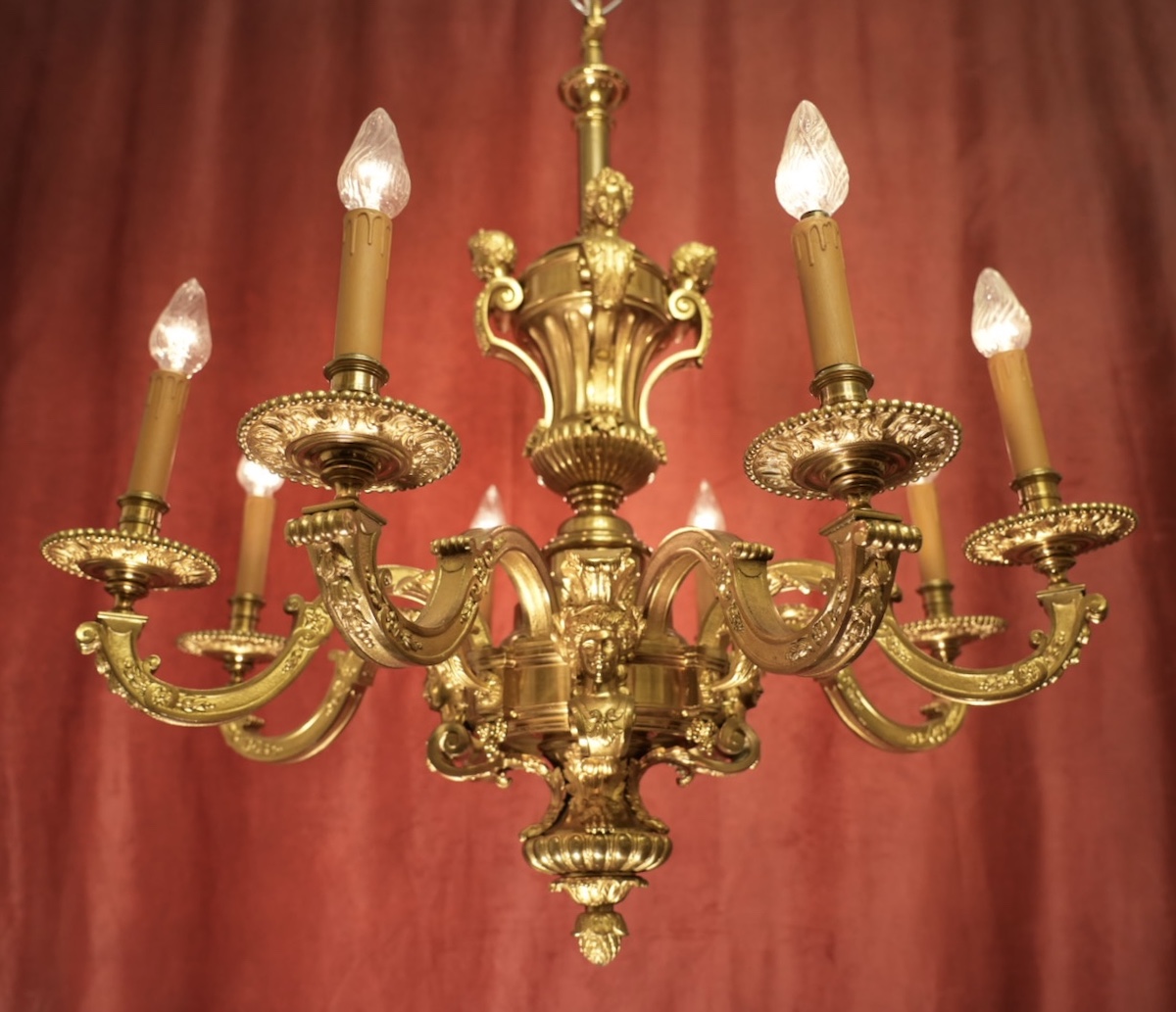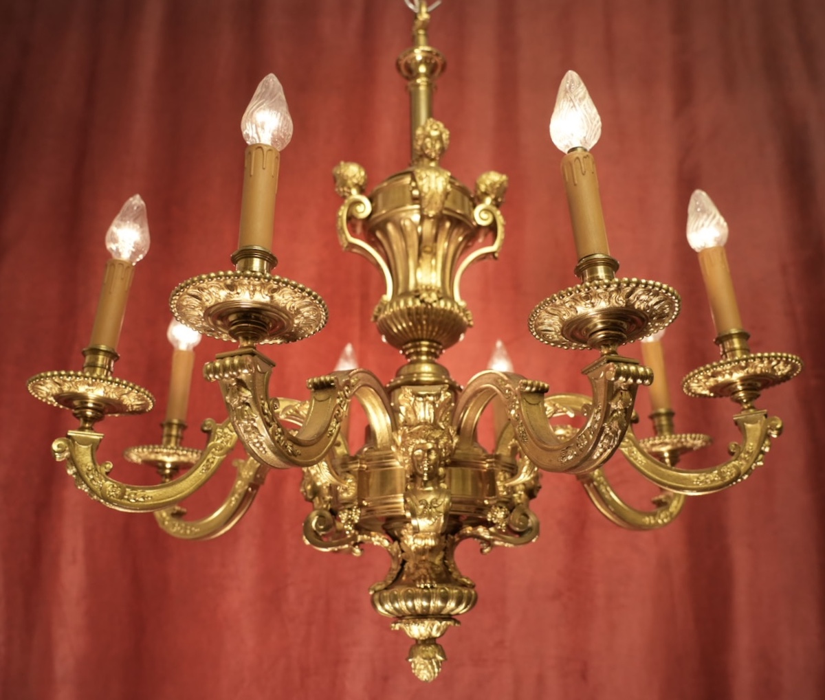 wunderschöner antiker Mazazin Kronleuchter Bronze 8 flammig