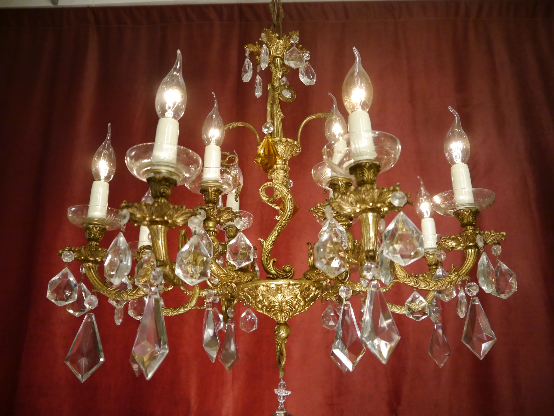 alter Kronleuchter Goldbronze Messing Crystal 12 Lampen